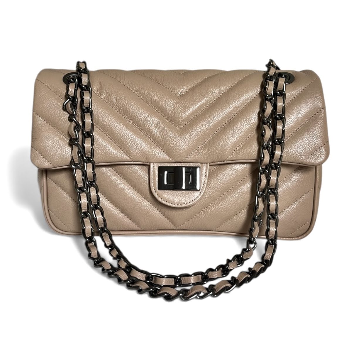 Bolsa feminina em de couro legítimo com costura matelassê e alça corrente. Uma modelagem clássica, flexícel e super leve e confortável.