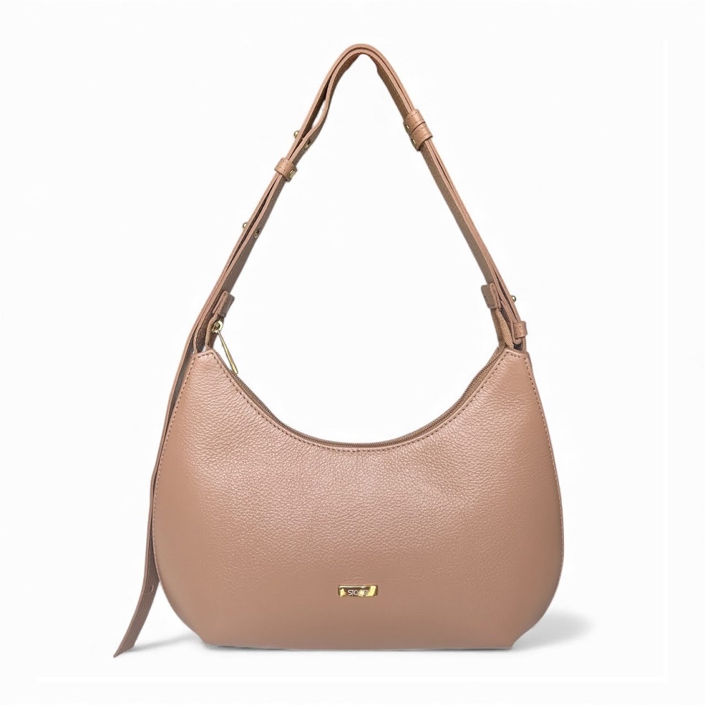 Bolsa feminina em couro legítimo com metais de qualidade e com alça longa regulável.
